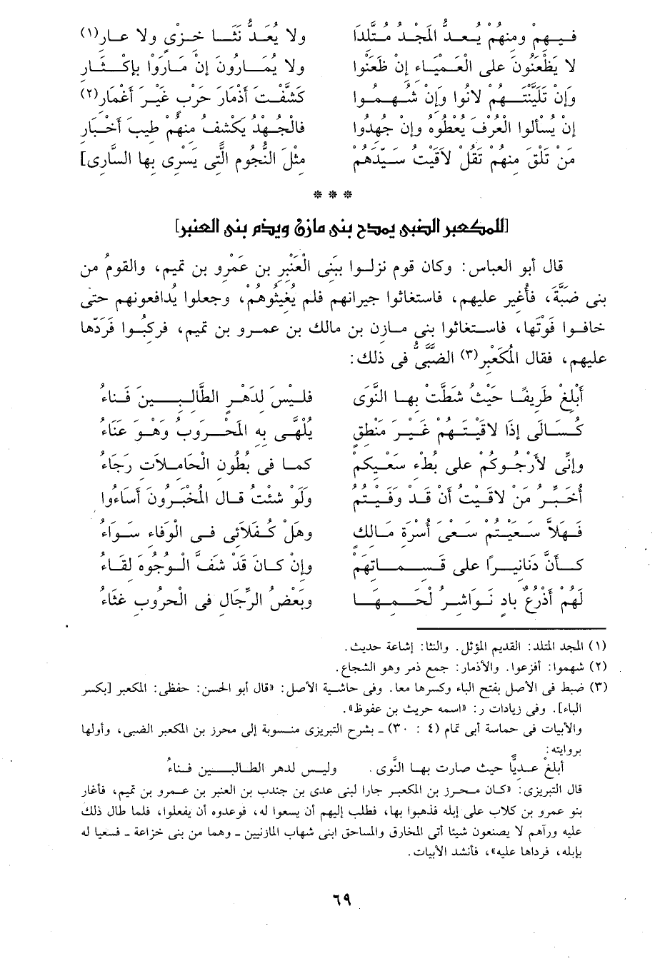 للمكعبر الضبي يمدح بني مازن ويذم بني العنبر