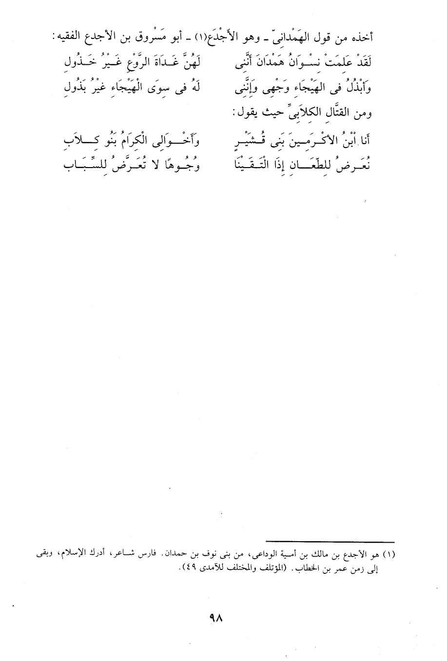 1 هو الأجدع بن مالك بن أمية الوداعى، من بنى نوف بن حمدان: فارس شاعر، أدرك الإسلام، وبقي إلى زمن عمر بن الخطاب. "المؤتلف والمختلف للآمدى 49".