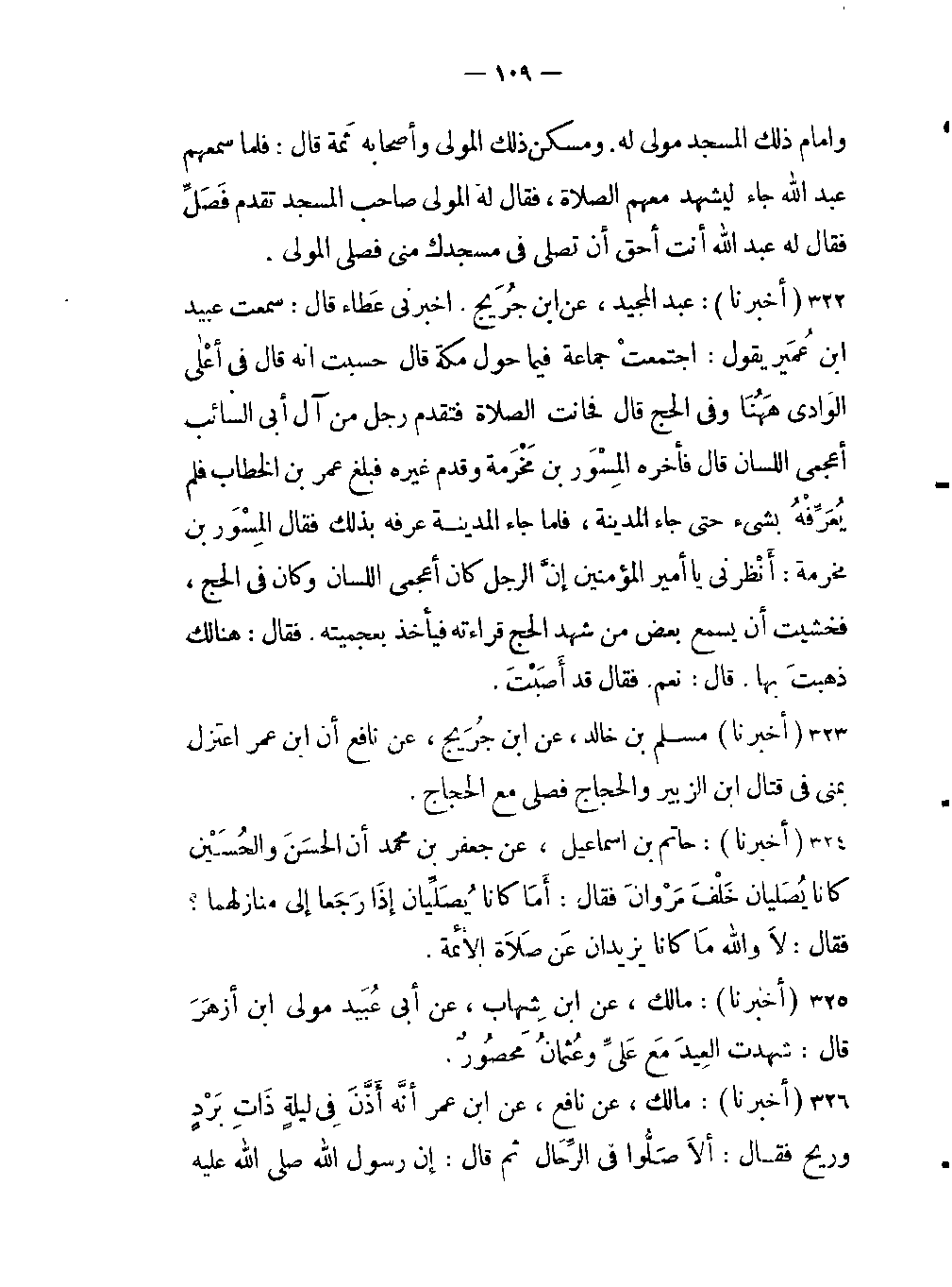 323- (أخبرنا) : مسلم بن خالد، عن ابن جُريج، عن نافع: