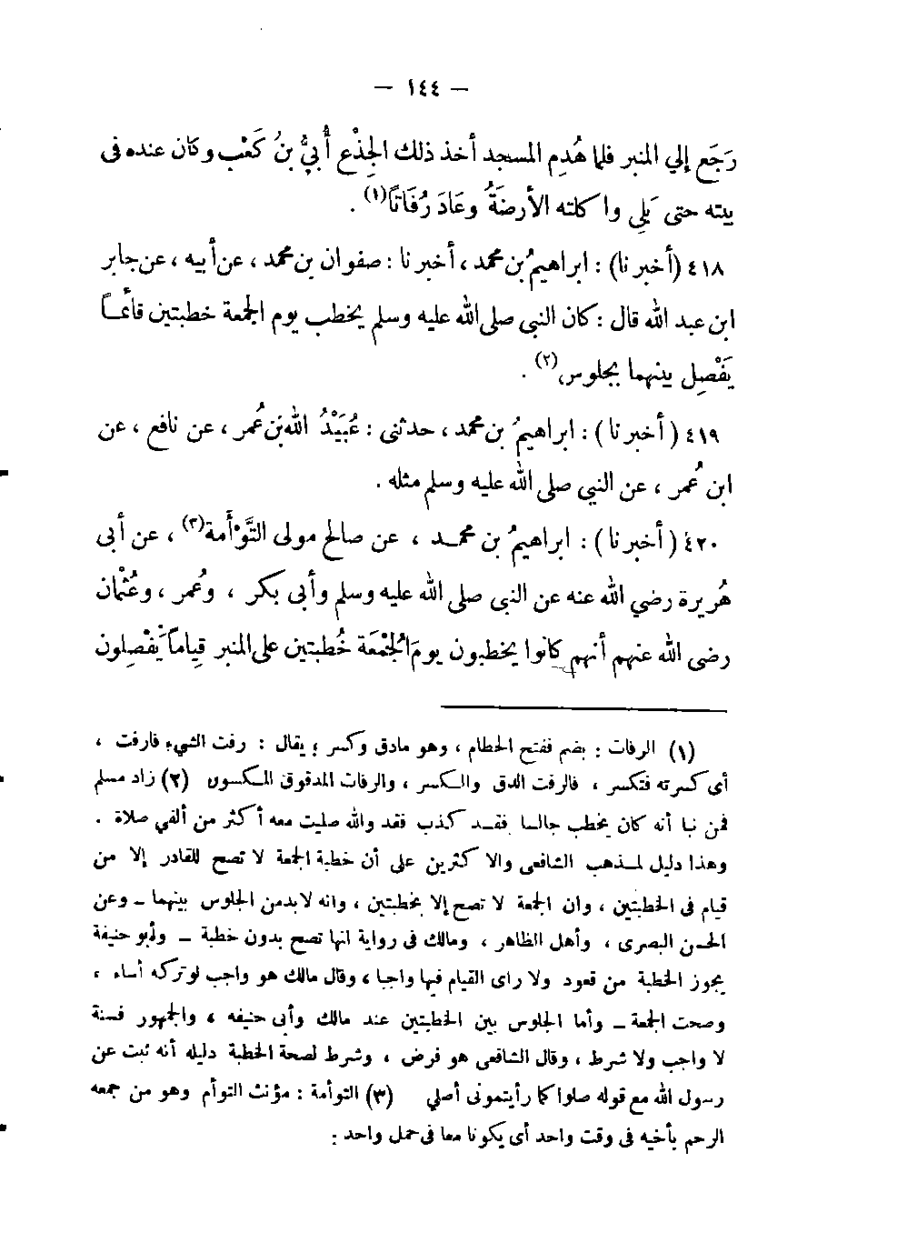 419 - (أخبرنا) : إبراهيم بن محمد، حدثني: عُبَيْدُ اللَّه بن عُمر، عن نافع، عن ابن عمر: