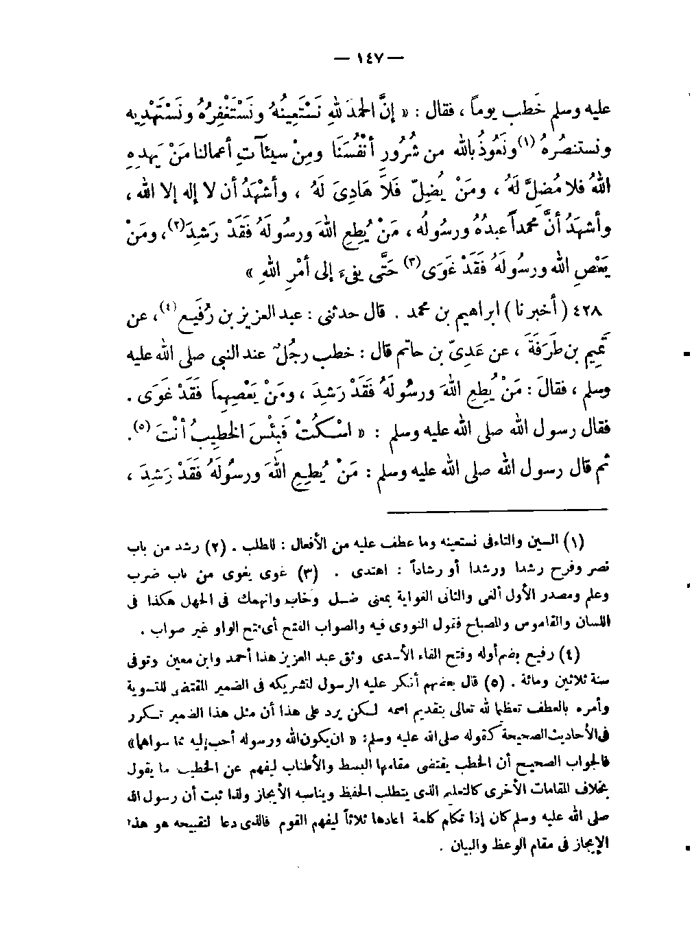 428- (أخبرنا) : إبراهيم بن محمد قال حدثني: عبد العزيز بن رُفَيع (رفيع بضم أوله وفتح الفاء الأسدي وثق عبد العزيز هذا أحمد وابن معين وتوفي سنة ثلاثين ومائة) عن تَمِيم بن طَرَفَةَ، عن عَدِيّ بن حاتم قال: