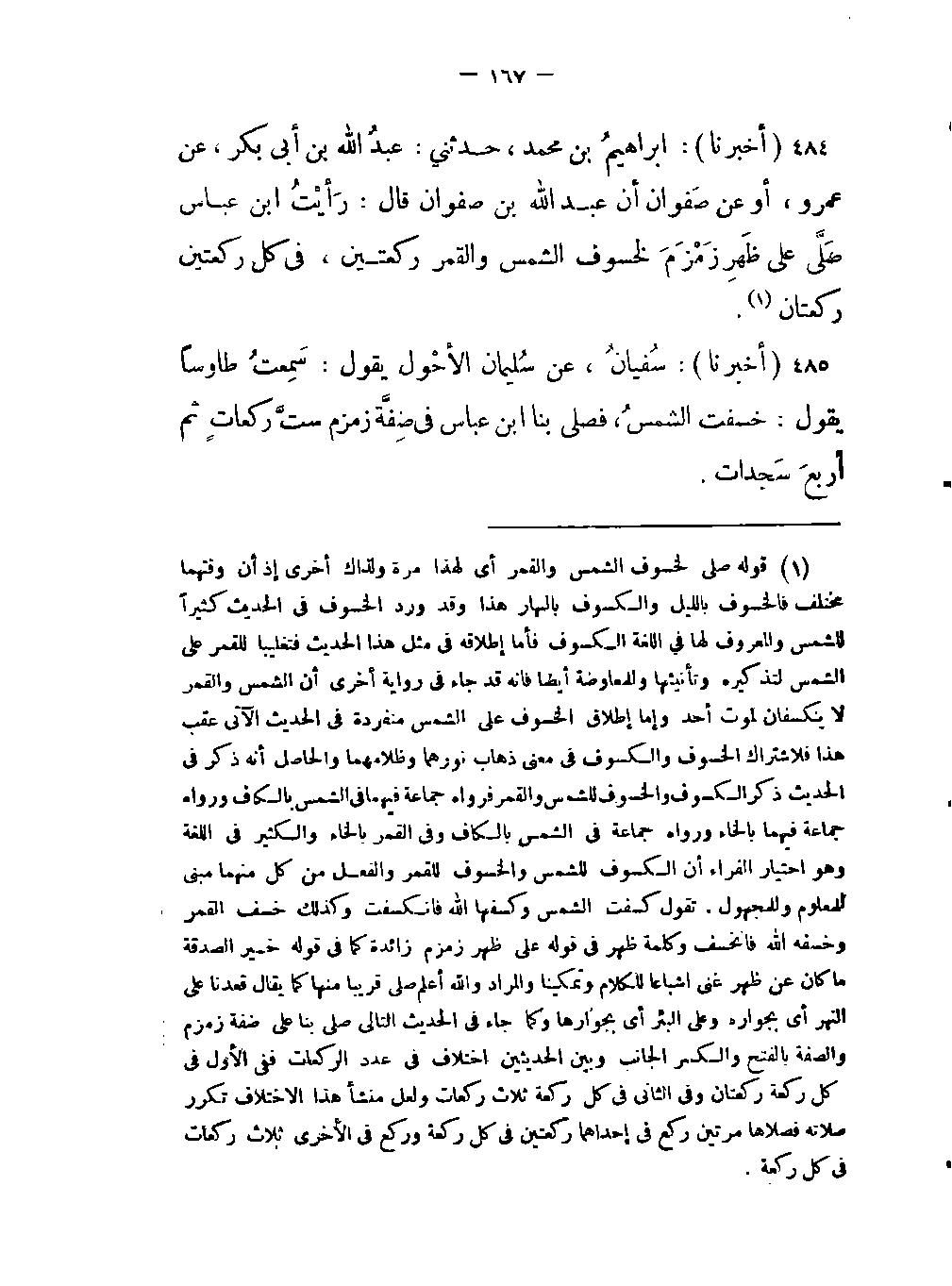 -سمعت طاوساً يقول: خسفت الشمسُ فصلى بنا ابن عباس في ضْفَّة زمزم ستَّ ركعاتٍ ثم أربعَ سَجدات.