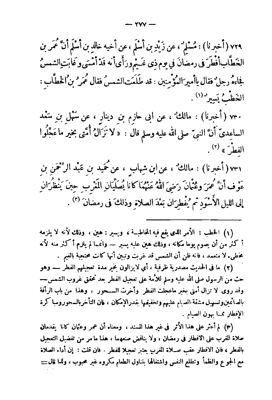 729- (أخبرنا) : مُسْلِمٌ، عن زَيْدِ بن أسْلَم، عن أخيه خالِد بن أسْلَم: