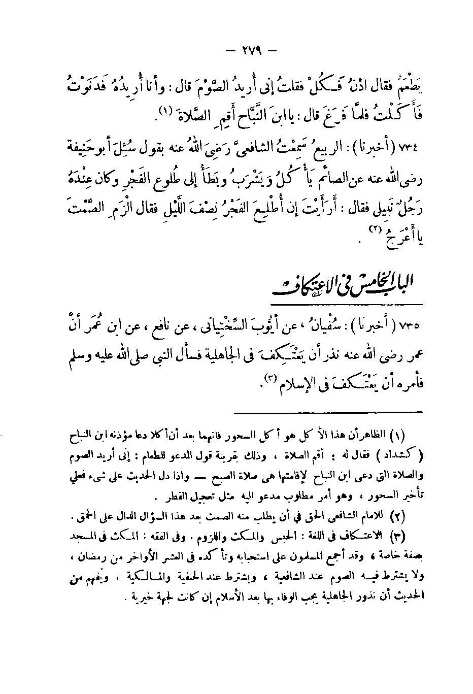-أنَّ عُمَ رضي اللَّه عنه نذر أن يَعْتَكِفَ في الجاهلية فسأل النبي صلى اللَّه عليه وسلم فأمره أن يعتكف في الإسلام -[280]- (الإعتكاف في اللغة: الحبس والمكث واللزوم وفي الفقه: المكث في المسجد بصفة خاصة وقد أجمع المسلمون على استحبابه وتأكده في العشر الأواخر من رمضان ولا يشترط فيه الصوم عند الشافعية ويشترط عند الحنفية والمالكية ويفهم من الحديث أن نذور الجاهلية يجب الوفاء بها بعد الإسلام إن كانت لجهة خيرية) .