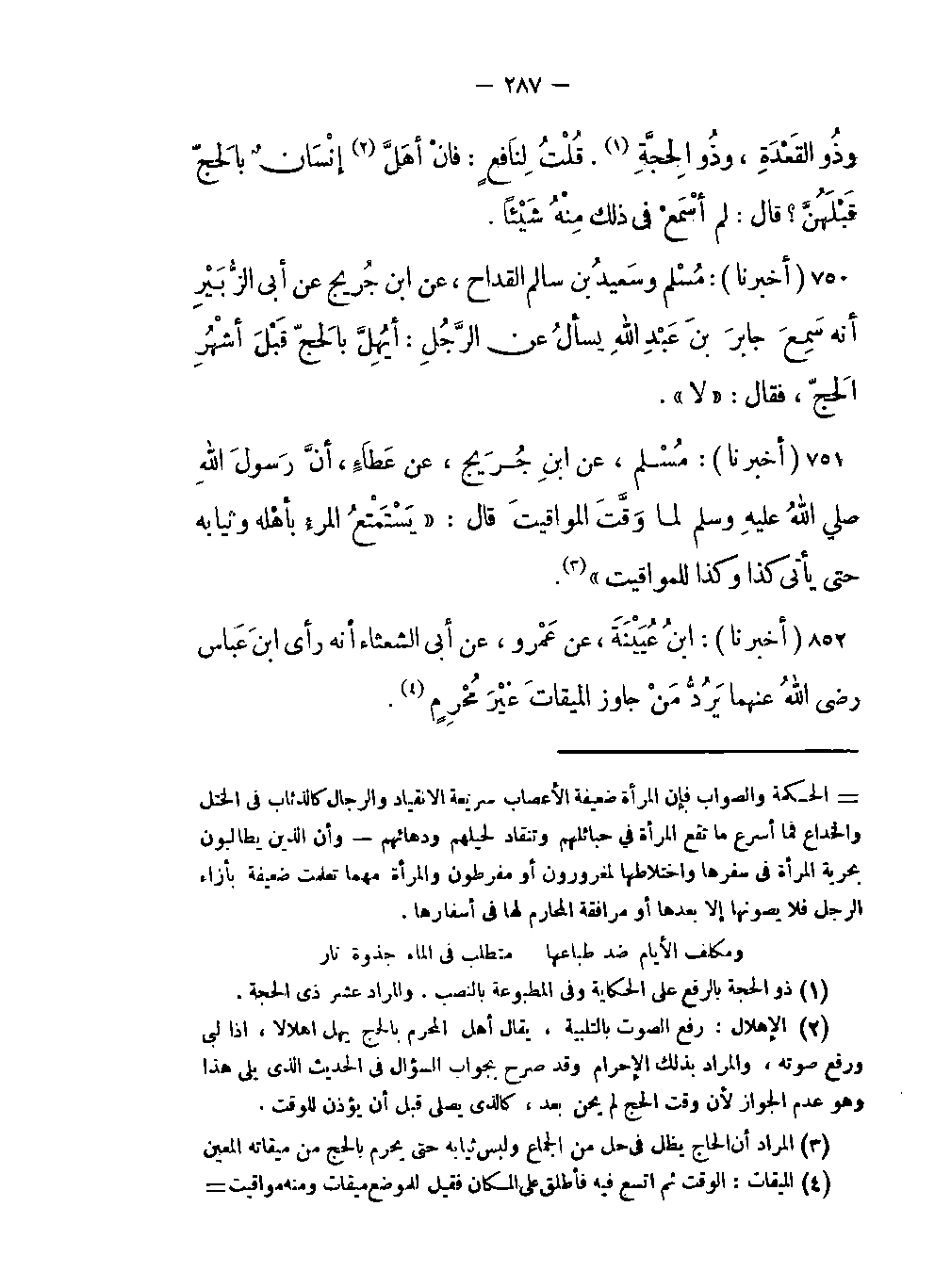 -أنَّ رسولَ اللَّهِ صلى اللَّهُ عليهِ وسلم لما وَقَّتَ المواقيتَ قال: «يَسْتَمْتِععُ المرءُ بأهْله وثيابه حتى يأتي كذا وكذا للمواقيت (المراد أن الحاج يظل في حل من الجماع ولبس ثيابه حتى يحرم بالحج من ميقاته المعين) » .