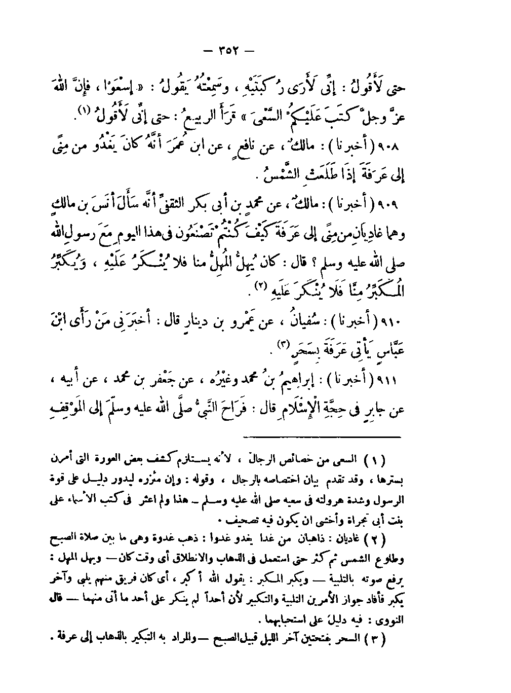 -مَنْ رَأى ابْنَ عَبَّاسٍ يأتِي عَرَفَةَ بِسَحَرٍ (السحر بفتحتين آخر الليل قبيل الصبح والمراد به التبكير بالذهاب إلى عرفة) .
