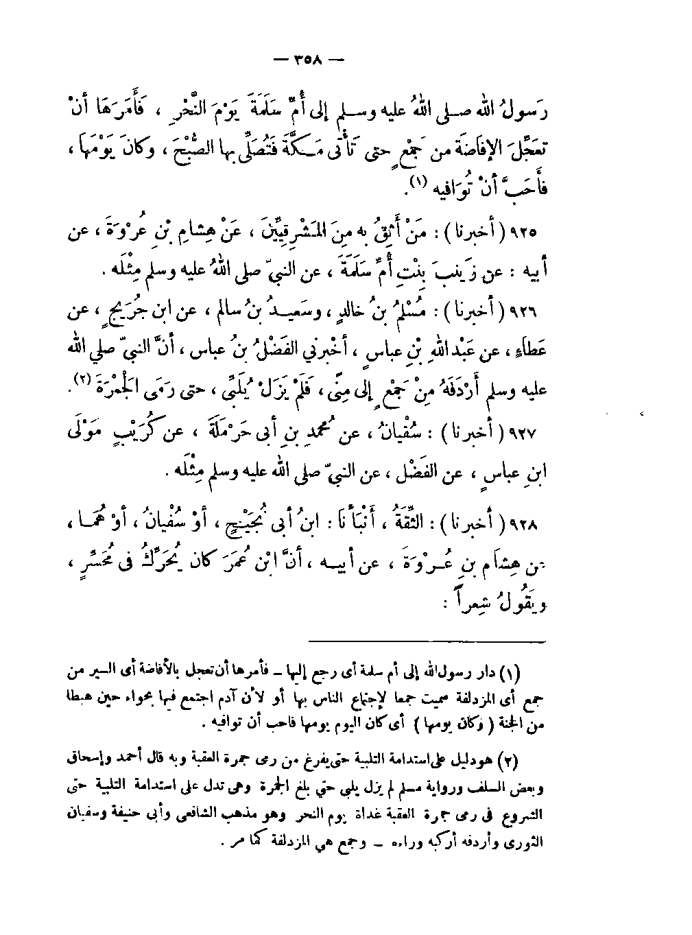 927- (أخبرنا) : سُفْيانُ، عن مُحمدِ بنِ أبي حَرْمَلَةَ، عن كُرَيْبٍ مَولَى ابنِ عباسٍ، عن الفَضْل: