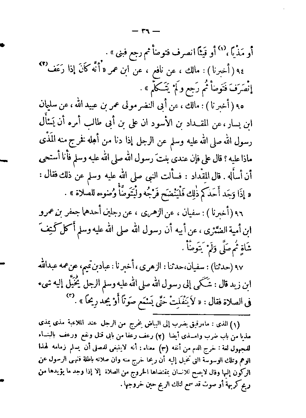 95- (أخبرنا) : مالك، عن ابي النضرمولى عمر بن عبيد الله، عن سليمان بن يسار، عن المقداد بن الأسود: