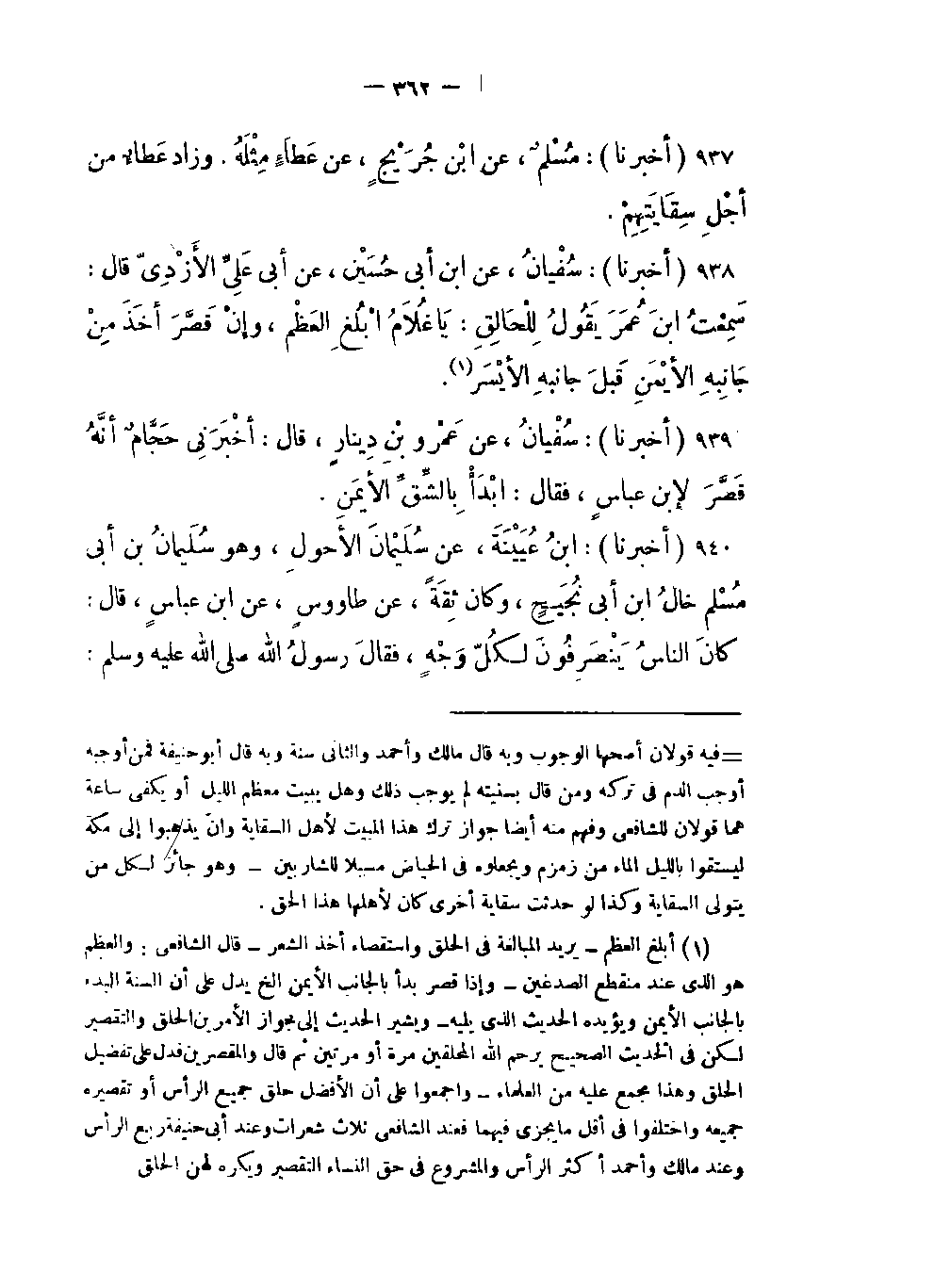 -أخْبَرَنِي حَجَّامٌ أنَّهُ قَصَّرَ لإبن عباسٍ فقال: ابْدَأْ بِالشِّقِّ الأيْمَنِ.