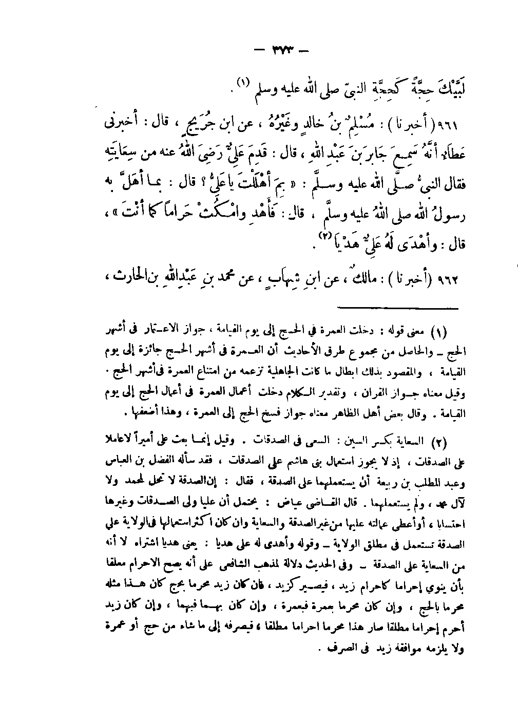 -أخبرني عَطاءٌ أنَّهُ سَمِعَ جابرَ بنَ عَبْدِ اللَّهِ، قال: قَدِمَ عَلِيُّ رَضِيَ اللَّهُ عنهُ من سِعايَتِهِ فَقَالَ النبيُّ صلى اللَّه عليه وسلم: " بِما أهْلَلْتَ يا عَلِيُّ؟ قال: بما أهَلَّ بهُّ رسولُ اللَّه صلى اللَّه عليه وسلم قال: فَأَهْدِ وامْكُثْ حَرَاماً كما أنْتَ"، قال: وأهْدَى لَهُ عَلِيٌّ هَدْياً (السعاية بكسر السين: في الصدقات وقيل إنما بعث علي أميراً لاعاملا على الصدقات إذ لا يجوز استعمال بني هاشم على الصدقات فقد سأله الفضل بن العباس وعبد المطلب بن ربيعة أن يستعملهما على الصدقة فقال: إن الصدقة لا تحل لمحمد ولا لآل محمد ولم يستعملهما قال القاضي عياض: يحتمل أن عليا ولى الصدقات وغيرها احتسابا أو أعطى عمالته عليها من غير الصدقة والسعاية وإن كان أكثر استعمالها في الولاية على الصدقة تستعمل في مطلق الولاية وقوله وأهدى له علي هديا: يعني هديا اشتراه لا أنه من السعاية على الصدقة وفي الحديث دلالة لمذهب الشافعي على أنه يصح الإحرام معلقا بأن ينوي إحراما كإحرام زيد فيصير كزيد فإن كان زيد محرما بحج كان هذا مثله محرما بالحج وإن كان محرما بعمرة فبعمرة وإن كان بهما فبهما وإن كان زيد أحرم إحراما مطلقا صار هذا محرما إحراما مطلقا فيصرفه إلى ما شاء من حج أو عمرة ولا يلزمه موافقة زيد في الصرف) .