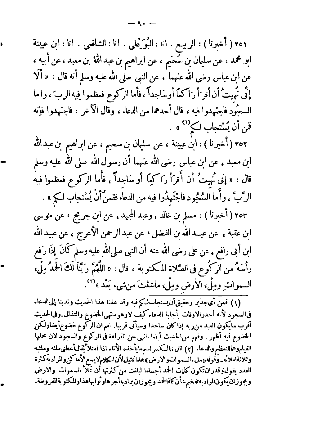 251-أخبرنا) : الربيع أنا البويطي: أنا الشافعي: أنا ابن عيينة أبو محمد، عن سليمان بن سحَيم، عن إبراهيم بن عبد اللَّه بن معبد، عن أبيه عن إبن عباس رضي اللَّه عنهما: