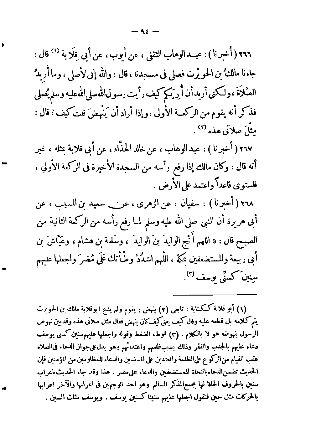 267- (أخبرنا) : عبد الوهاب، عن خالد الحذّاءِ، عن أبي قلابة بمثله، غير أنه قال: