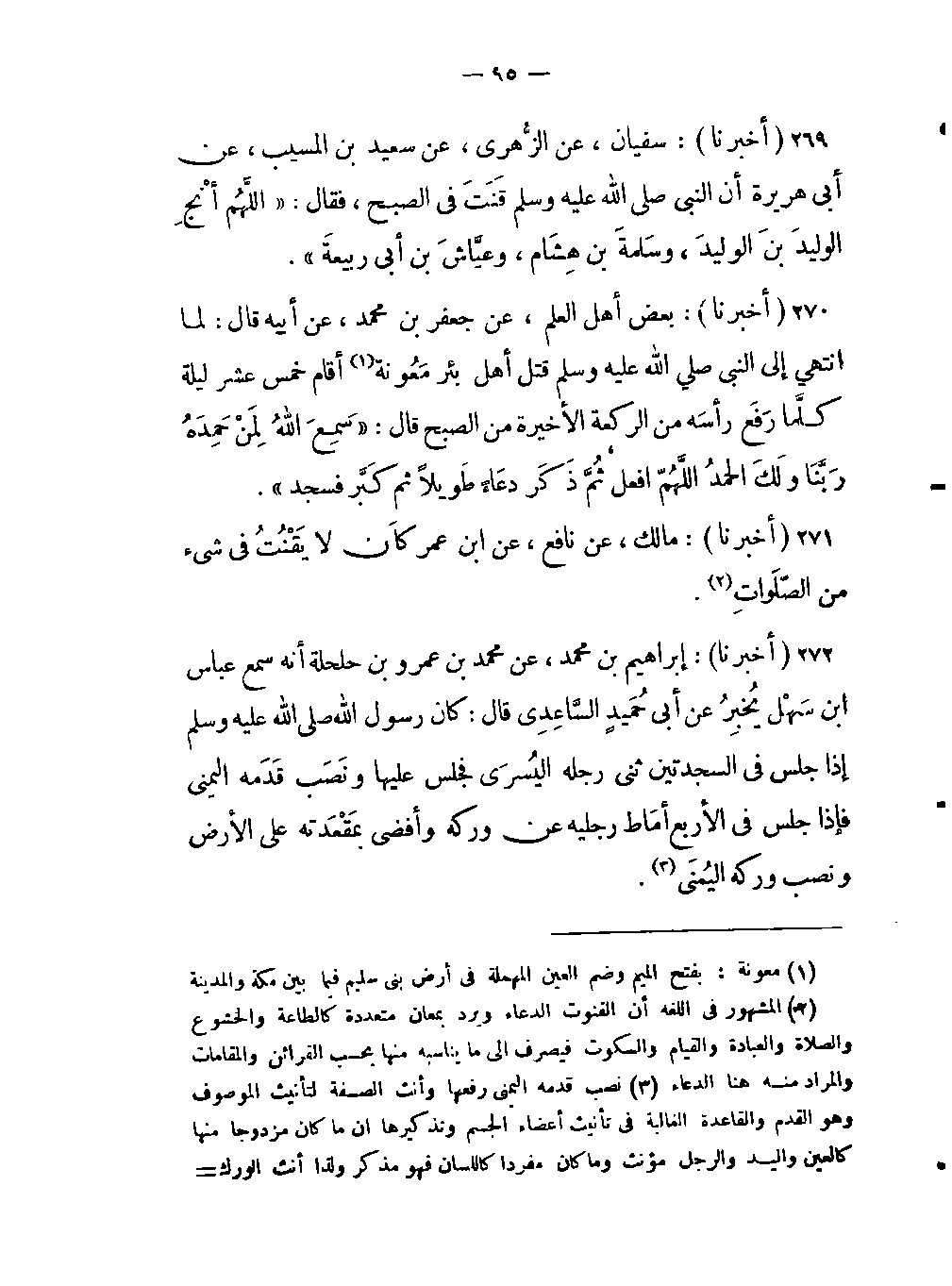 -أن النبي صلى اللَّه عليه وسلم قَنَتَ في الصبح، فقال: «اللَّهُم أَنْج الوليدَ بنَ الوليدَ، وسَلمة بن هِشَام، وعَيَّاشَ بن أبي ربيعةَ» .