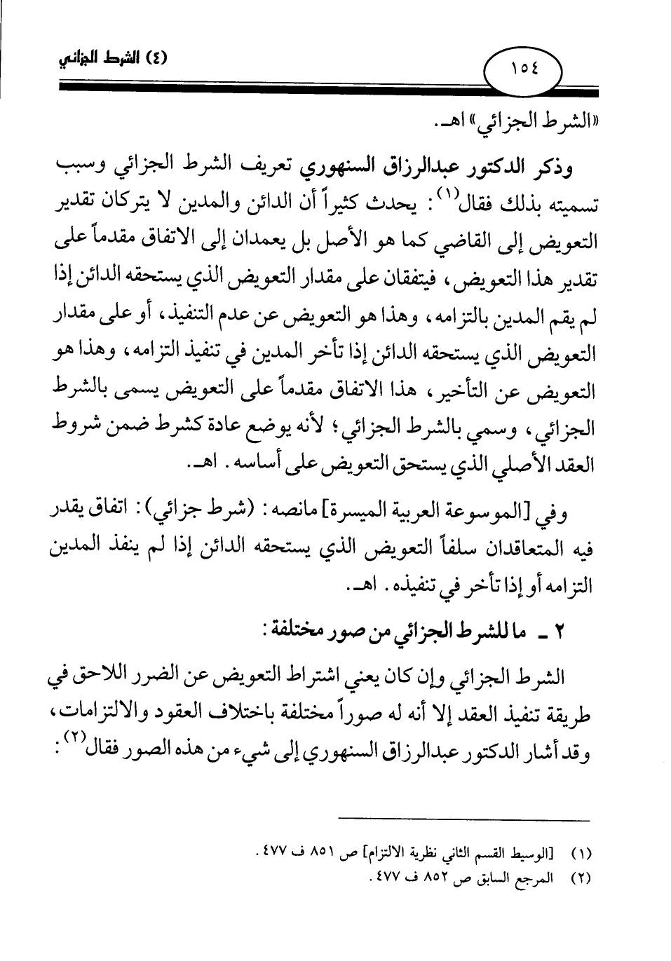 (¬1) [الوسيط القسم الثاني نظرية الالتزام] ص 852 ف 477.