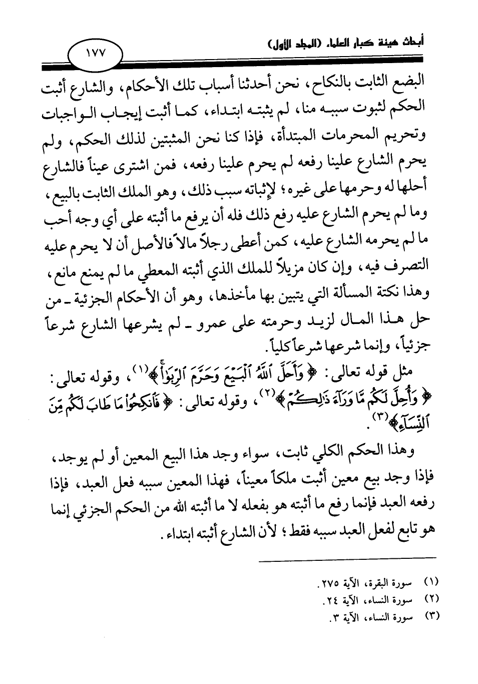 وهذا الحكم الكلي ثابت، سواء وجد هذا البيع المعين أو لم يوجد، فإذا وجد بيع معين أثبت ملكا معينا، فهذا المعين سببه فعل العبد، فإذا رفعه العبد فإنما رفع ما أثبته هو بفعله لا ما أثبته الله من الحكم الجزئي إنما هو تابع لفعل العبد سببه فقط؛ لأن الشارع أثبته ابتداء.