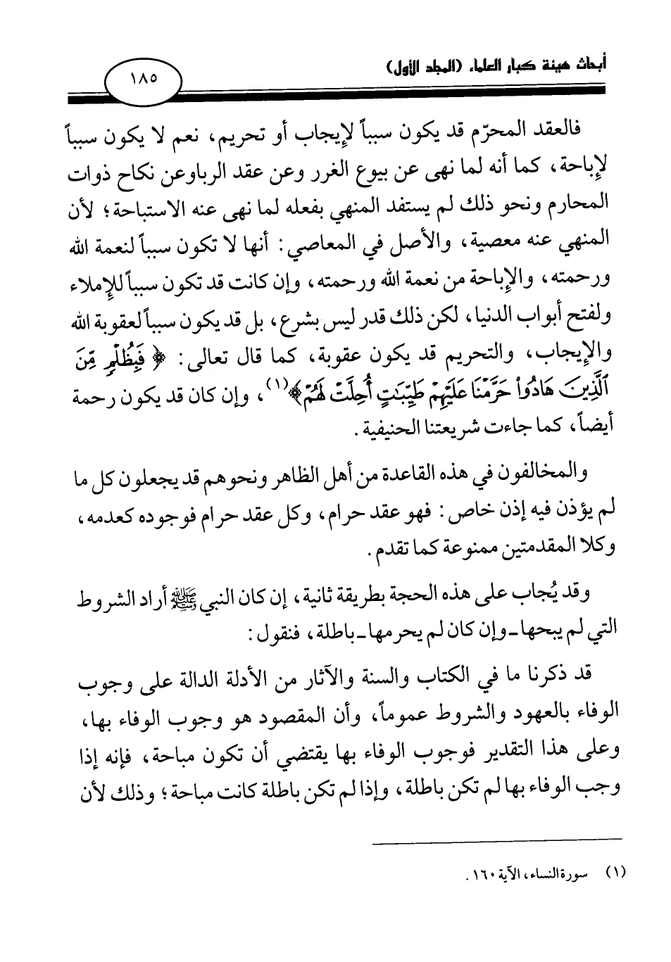 فالعقد المحرم قد يكون سببا لإيجاب أو تحريم، نعم لا يكون سببا لإباحة، كما أنه لما نهى عن بيوع الغرر وعن عقد الربا وعن نكاح ذوات المحارم ونحو ذلك لم يستفد المنهي بفعله لما نهى عنه الاستباحة؛ لأن المنهي عنه معصية، والأصل في المعاصي: أنها لا تكون سببا لنعمة الله ورحمته، والإباحة من نعمة الله ورحمته، وإن كانت قد تكون سببا للإملاء ولفتح أبواب الدنيا، لكن ذلك قدر ليس بشرع، بل قد يكون سببا لعقوبة الله والإيجاب، والتحريم قد يكون عقوبة، كما قال تعالى: {فَبِظُلْمٍ مِنَ الَّذِينَ هَادُوا حَرَّمْنَا عَلَيْهِمْ طَيِّبَاتٍ أُحِلَّتْ لَهُمْ} (¬1) وإن كان قد يكون رحمة أيضا، كما جاءت شريعتنا الحنيفية.