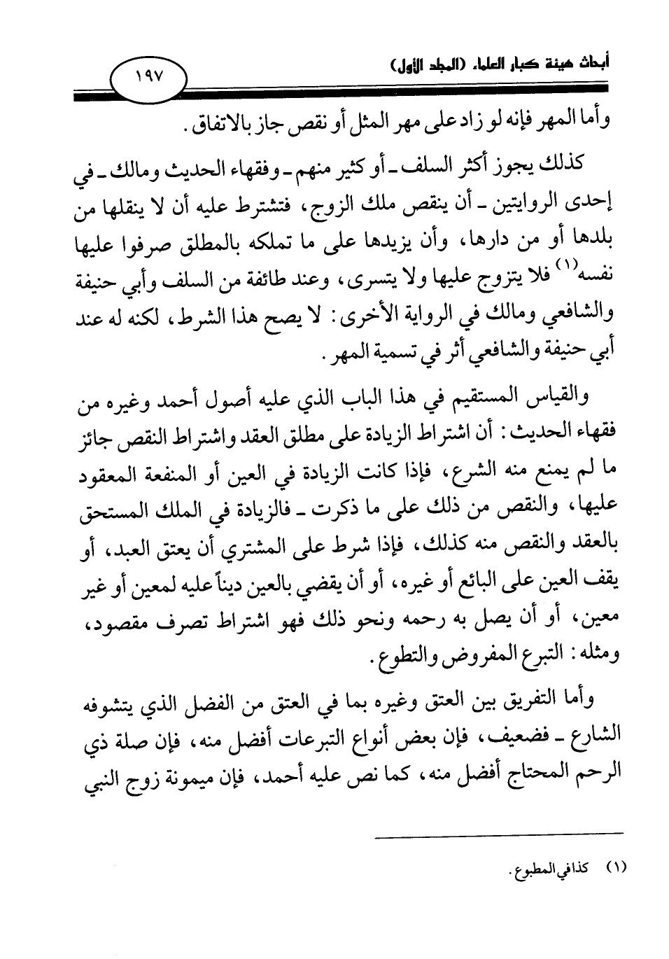 كذلك يجوز أكثر السلف- أو كثير منهم- وفقهاء الحديث ومالك - في إحدى الروايتين- أن ينقص ملك الزوج، فتشترط عليه أن لا ينقلها من بلدها أو من دارها، وأن يزيدها على ما تملكه بالمطلق صرفوا عليها نفسه (¬1) فلا يتزوج عليها ولا يتسرى، وعند طائفة من السلف وأبي حنيفة والشافعي ومالك في الرواية الأخرى: لا يصح هذا الشرط، لكنه له عند أبي حنيفة والشافعي أثر في تسمية المهر.