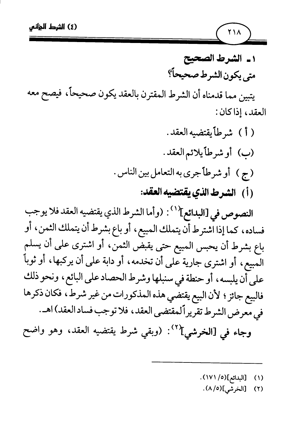 يتبين مما قدمناه أن الشرط المقترن بالعقد يكون صحيحا، فيصح معه العقد، إذا كان: