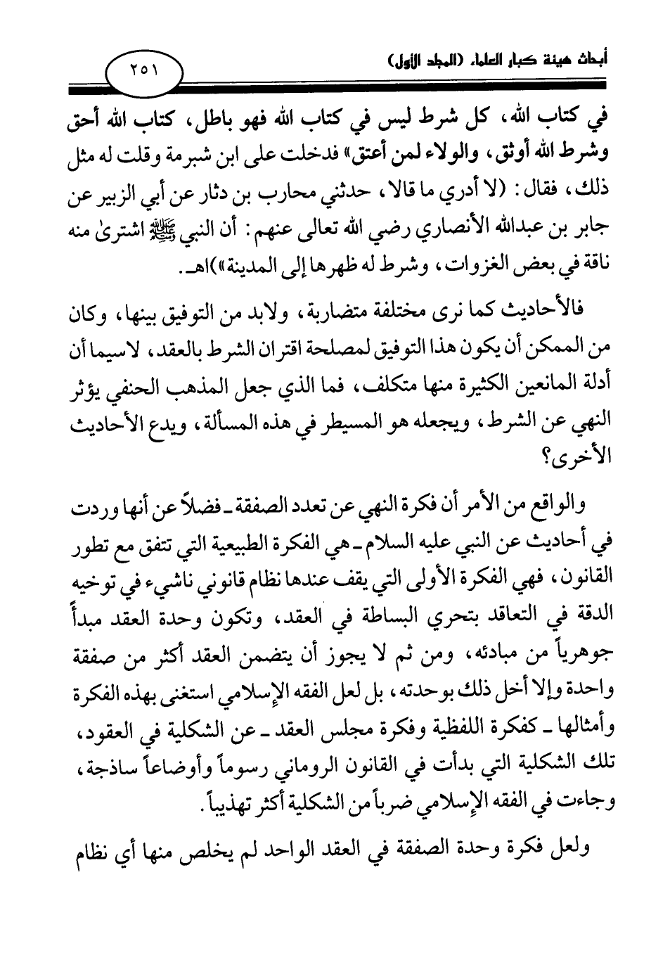 والواقع من الأمر أن فكرة النهي عن تعدد الصفقة- فضلا عن أنها وردت في أحاديث عن النبي عليه السلام- هي الفكرة الطبيعية التي تتفق مع تطور القانون، فهي الفكرة الأولى التي يقف عندها نظام قانوني ناشئ في توخيه الدقة في التعاقد بتحري البساطة في العقد، وتكون وحدة العقد مبدأ جوهريا من مبادئه، ومن ثم لا يجوز أن يتضمن العقد أكثر من صفقة واحدة وإلا أخل ذلك بوحدته، بل لعل الفقه الإسلامي استغنى بهذه الفكرة وأمثالها- كفكرة اللفظية وفكرة مجلس العقد- عن الشكلية في العقود، تلك الشكلية التي بدأت في القانون الروماني رسوما وأوضاعا ساذجة، وجاءت في الفقه الإسلامي ضربا من الشكلية أكثر تهذيبا.