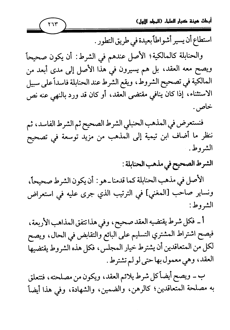 الأصل في مذهب الحنابلة كما قدمنا- هو: أن يكون الشرط صحيحا، ونساير صاحب [المغني] في الترتيب الذي جرى عليه في استعراض الشروط: