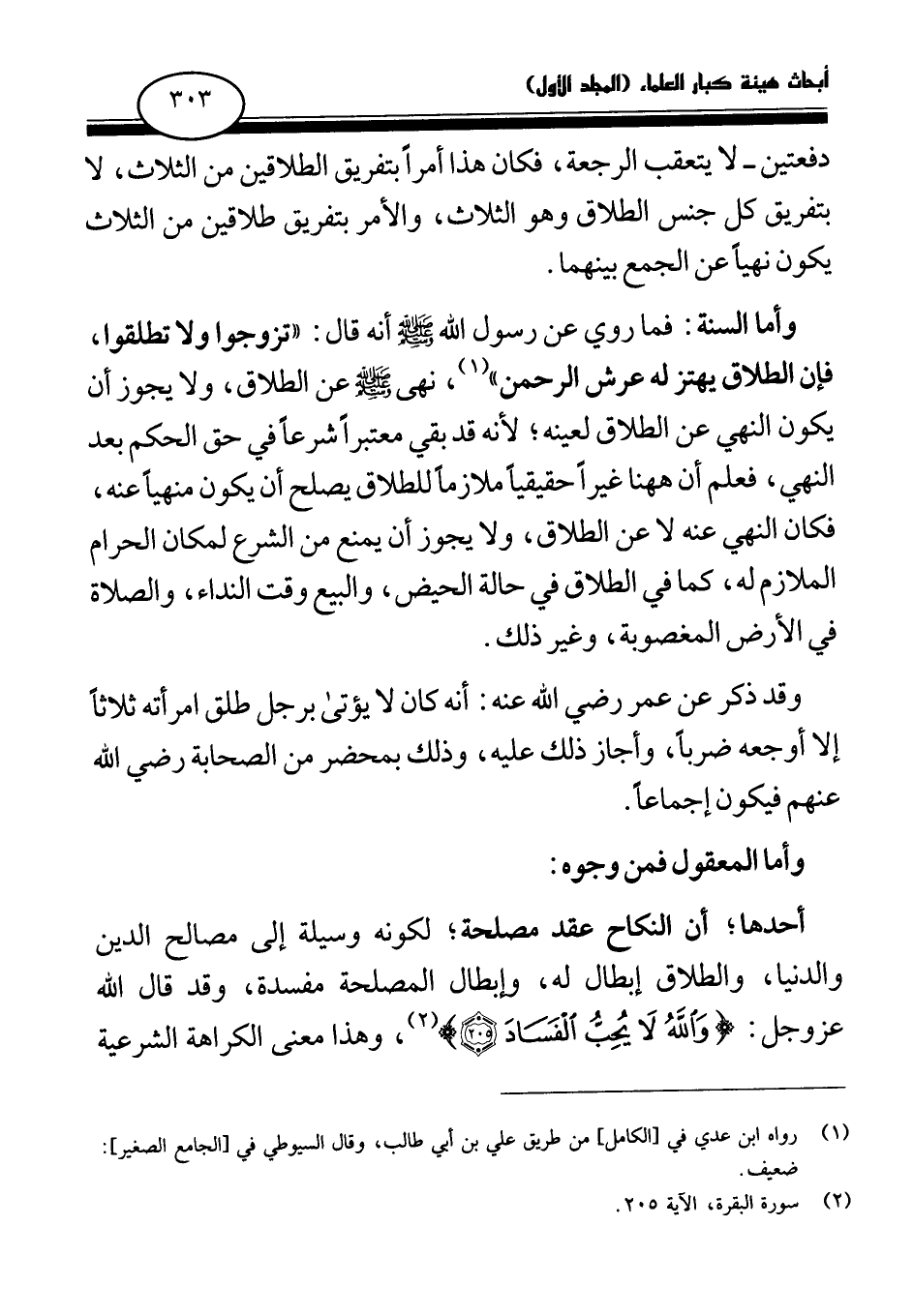 دفعتين- لا يتعقب الرجعة، فكان هذا أمرا بتفريق الطلاقين من الثلاث، لا بتفريق كل جنس الطلاق وهو الثلاث، والأمر بتفريق طلاقين من الثلاث يكون نهيا عن الجمع بينهما.