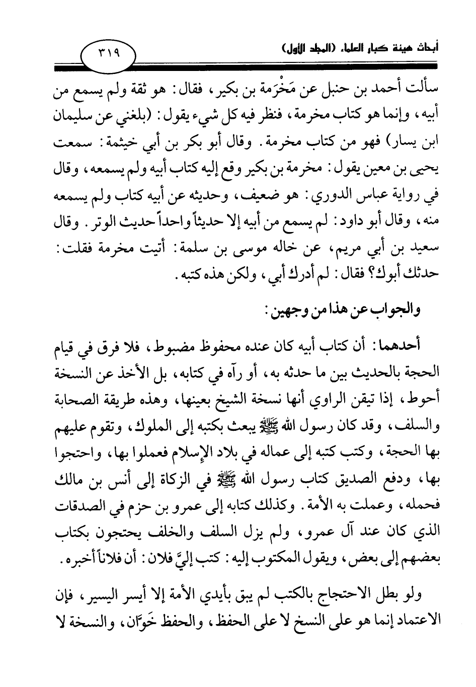 ولو بطل الاحتجاج بالكتب لم يبق بأيدي الأمة إلا أيسر اليسير، فإن الاعتماد إنما هو على النسخ لا على الحفظ، والحفظ خوان، والنسخة ولا