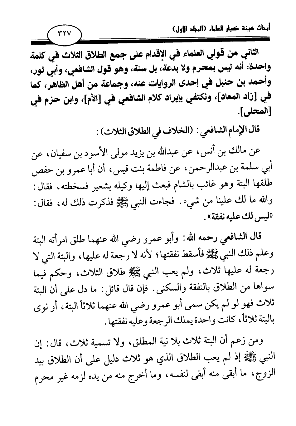 قال الإمام الشافعي: (الخلاف في الطلاق الثلاث) :