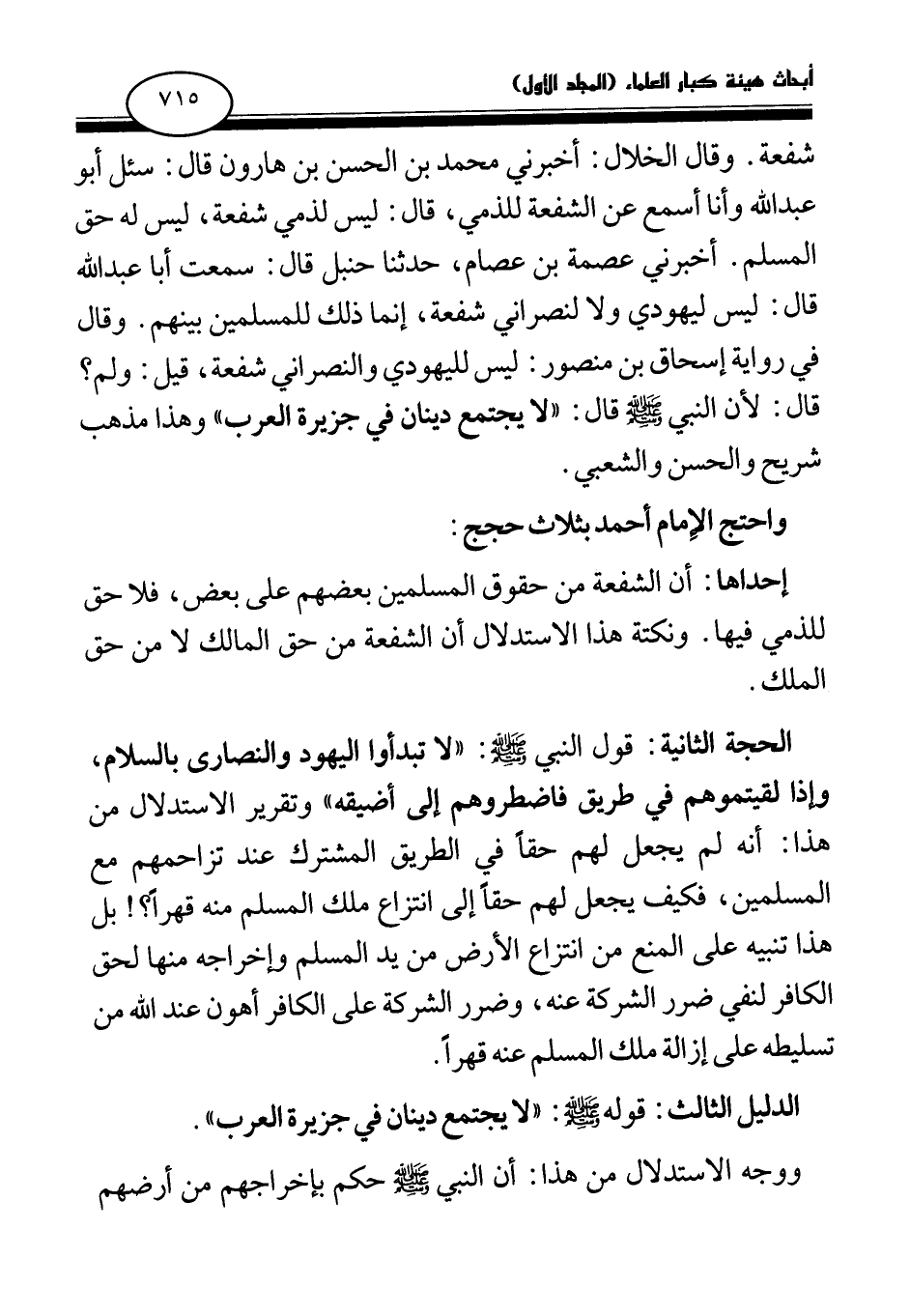 الدليل الثالث: قوله صلى الله عليه وسلم: «لا يجتمع دينان في جزيرة العرب (¬3) » .