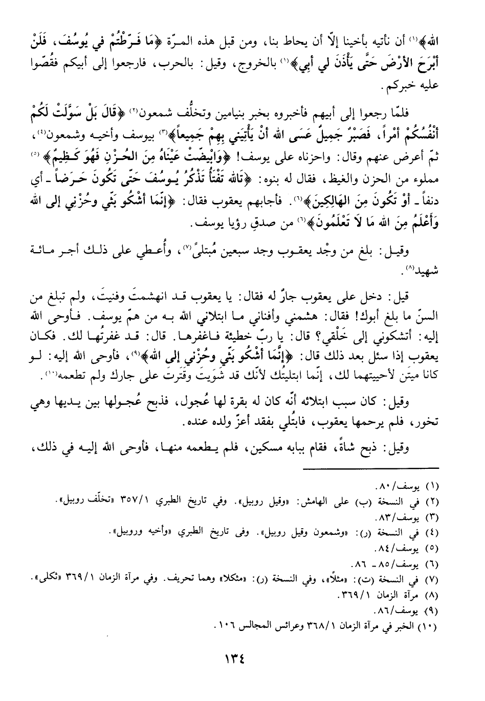 وَقِيلَ: بَلَغَ مِنْ وَجْدِ يَعْقُوبَ وَجْدَ سَبْعِينَ مُبْتَلًى، وَأُعْطِيَ عَلَى ذَلِكَ أَجْرَ مِائَةِ شَهِيدٍ.