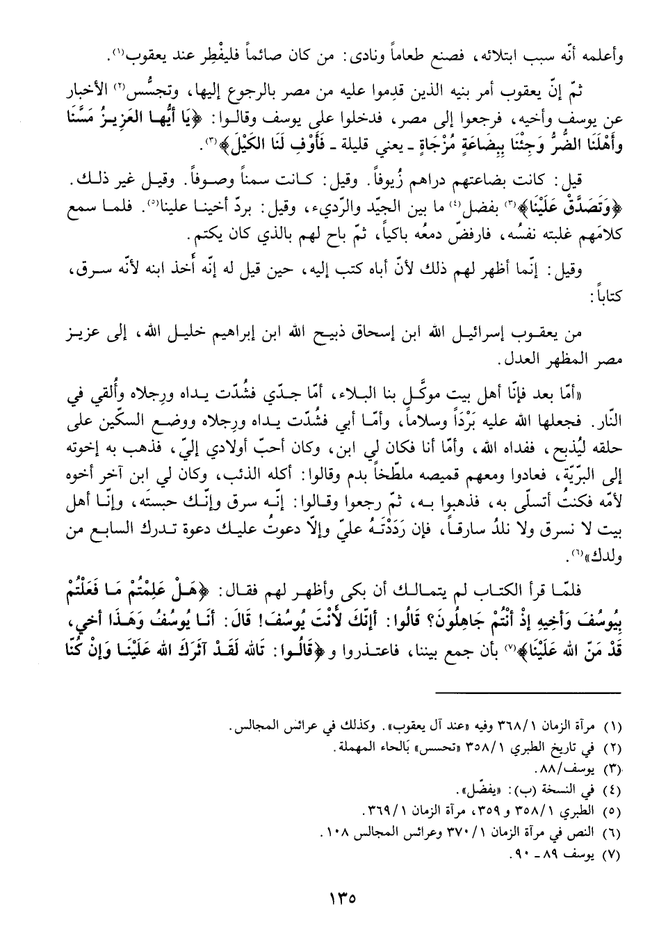 مِنْ يَعْقُوبَ إِسْرَائِيلِ اللَّهِ بْنِ إِسْحَاقَ ذَبِيحِ اللَّهِ بْنِ إِبْرَاهِيمَ خَلِيلِ اللَّهِ إِلَى عَزِيزِ مِصْرَ الْمُظْهِرِ الْعَدْلَ