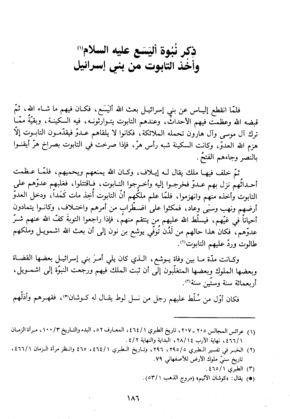 فَلَمَّا انْقَطَعَ إِلْيَاسُ عَنْ بَنِي إِسْرَائِيلَ بَعَثَ اللَّهُ الْيَسَعَ، فَكَانَ فِيهِمْ مَا شَاءَ اللَّهُ، ثُمَّ قَبَضَهُ اللَّهُ وَعَظُمَتْ فِيهِمُ الْأَحْدَاثُ وَعِنْدَهُمُ التَّابُوتُ يَتَوَارَثُونَهُ، فِيهِ السَّكِينَةُ وَبَقِيَّةٌ مِمَّا تَرَكَ آلُ مُوسَى وَآلُ هَارُونَ تَحْمِلُهُ الْمَلَائِكَةُ، فَكَانُوا لَا يَلْقَاهُمْ عَدُوٌّ فَيُقَدِّمُونَ التَّابُوتَ إِلَّا هَزَمَ اللَّهُ الْعَدُوَّ، وَكَانَتِ السَّكِينَةُ شِبْهَ رَأْسِ هِرٍّ، فَإِذَا صَرَخَتْ فِي التَّابُوتِ بِصُرَاخِ هِرٍّ أَيْقَنُوا بِالنَّصْرِ وَجَاءَهُمُ الْفَتْحُ.