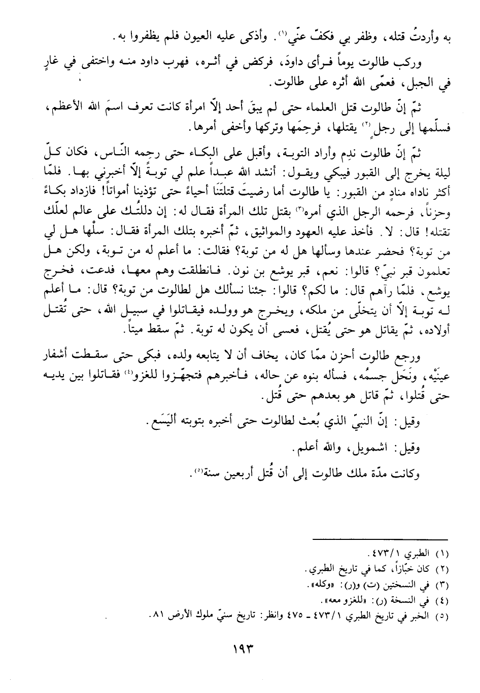 وَكَانَتْ مُدَّةُ مُلْكِ طَالُوتَ إِلَى أَنْ قُتِلَ أَرْبَعِينَ سَنَةً.