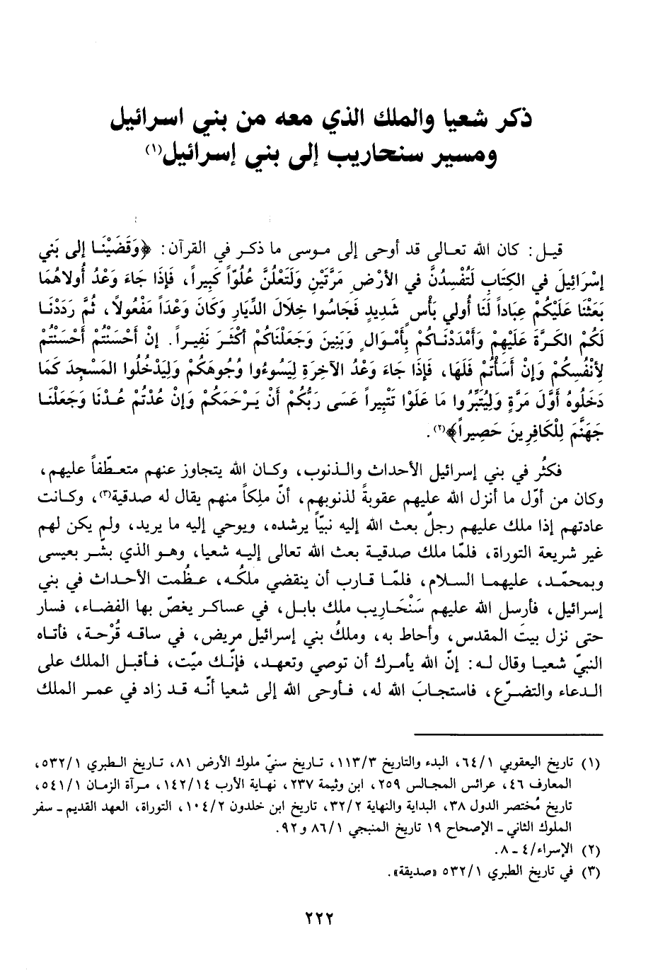 [ذِكْرُ شَعْيَا وَالْمَلِكِ الَّذِي مَعَهُ مِنْ بَنِي إِسْرَائِيلَ وَمَسِيرِ سَنْحَارِيبَ إِلَى بَنِي إِسْرَائِيلَ]