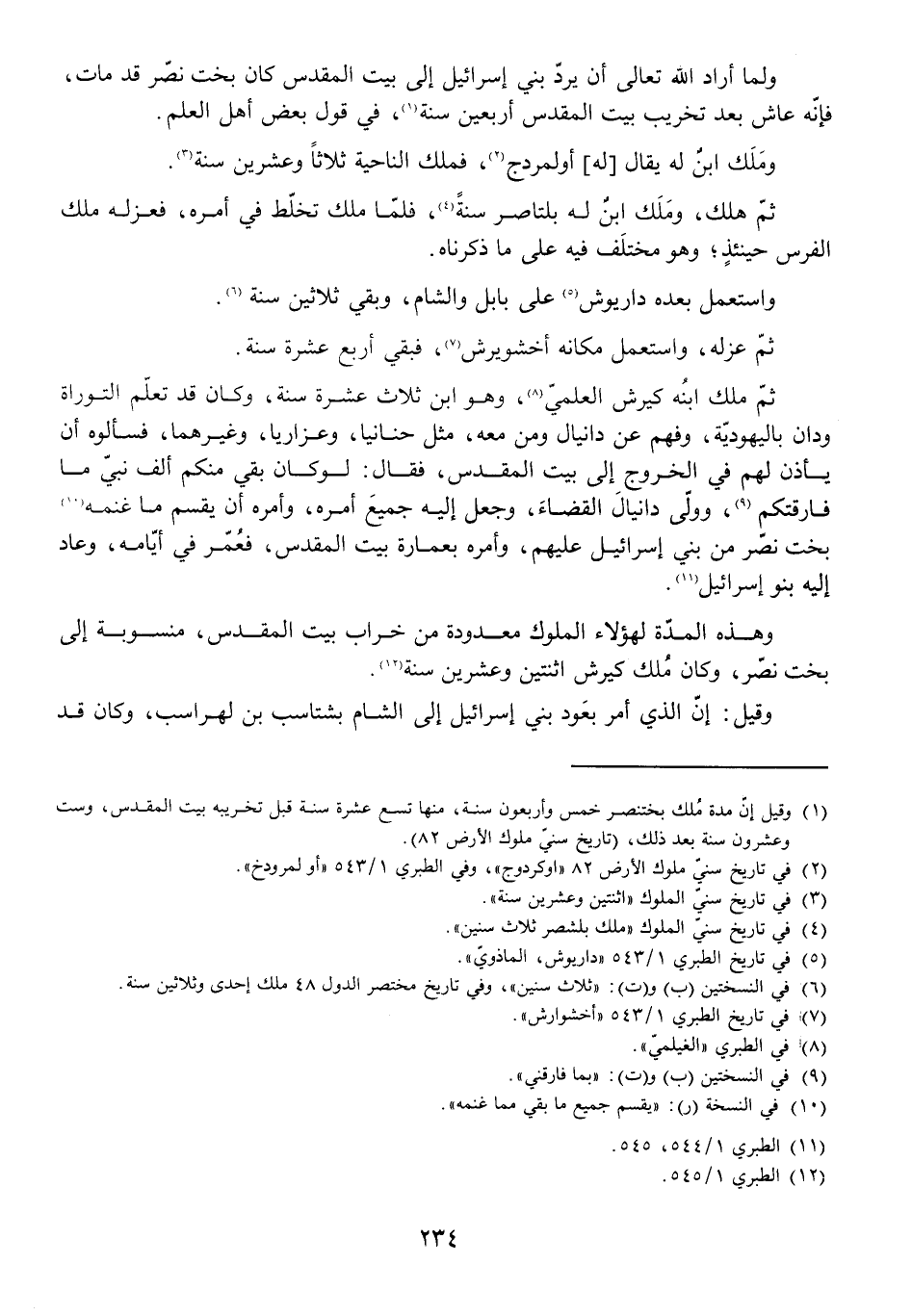 وَهَذِهِ الْمُدَّةُ لِهَؤُلَاءِ الْمُلُوكِ مَعْدُودَةٌ مِنْ خَرَابِ بَيْتِ الْمَقْدِسِ مَنْسُوبَةٌ إِلَى بُخْتُنَصَّرَ، وَكَانَ مُلْكُ كِيرَشَ اثْنَتَيْنِ وَعِشْرِينَ سَنَةً.