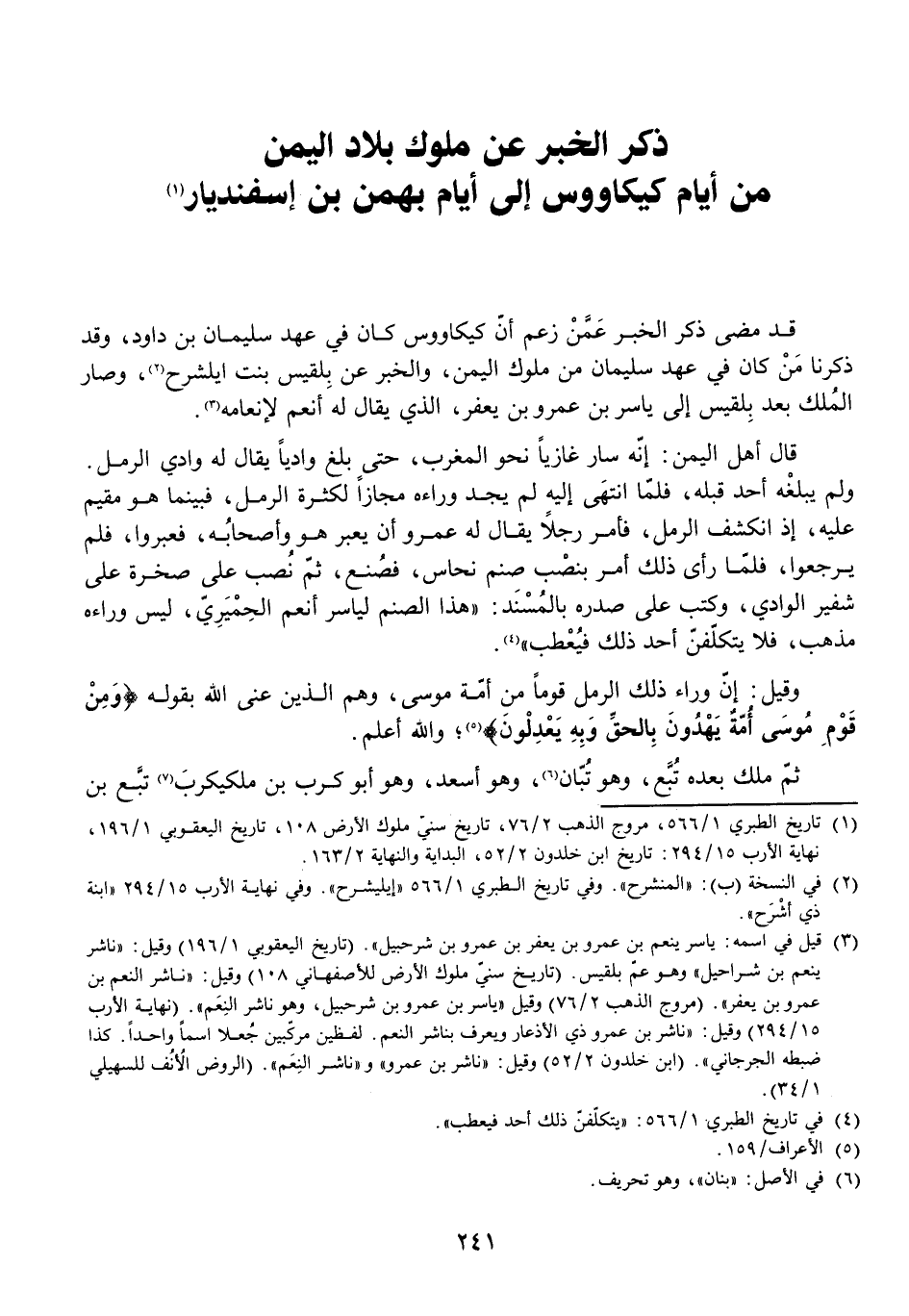 [ذِكْرُ الْخَبَرِ عَنْ مُلُوكِ بِلَادِ الْيَمَنِ مِنْ أَيَّامِ كَيْكَاوُوسَ إِلَى أَيَّامِ بَهْمَنَ بْنِ إِسْفِنْدِيَارَ]