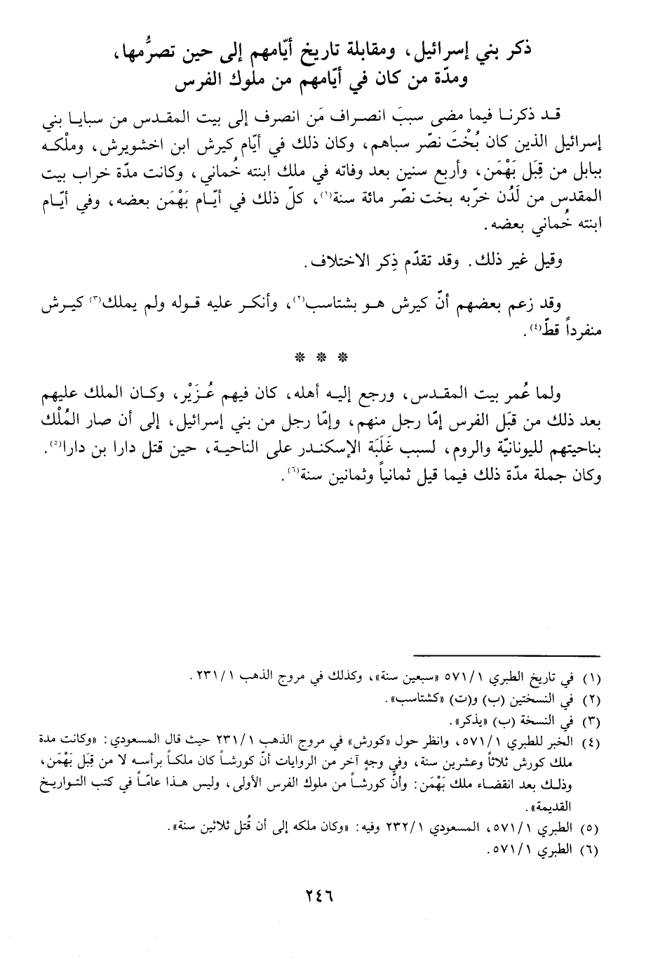 ذِكْرِ بَنِي إِسْرَائِيلَ وَمُقَابَلَةِ تَارِيخِ أَيَّامِهِمْ إِلَى حِينِ تَصَرُّمِهَا وَمُدَّةِ مَنْ كَانَ أَيَّامَهُمْ مِنْ مُلُوكِ الْفُرْسِ.