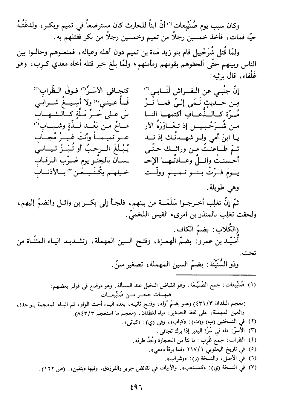 (الْكُلَابُ: بِضَمِّ الْكَافِ. أُسَيِّدُ بْنُ عَمْرٍو: بِضَمِّ الْهَمْزَةِ، وَفَتْحِ السِّينِ الْمُهْمَلَةِ، وَتَشْدِيدِ الْيَاءِ الْمُثَنَّاةِ مِنْ تَحْتِ. وَذُو السُّنَيْنَةِ: بِضَمِّ السِّينِ الْمُهْمَلَةِ، تَصْغِيرُ سِنٍّ.