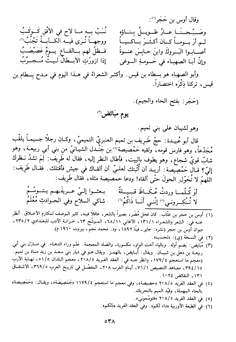 وَقَالَ أَوْسُ بْنُ حَجَرٍ: