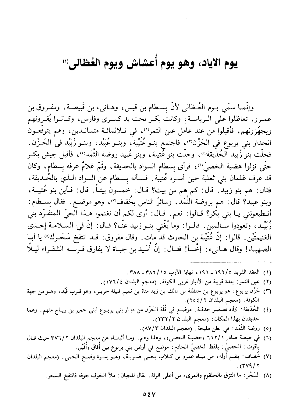 [يَوْمُ الْإِيَادِ، وَهُوَ يَوْمُ أُعْشَاشٍ وَيَوْمُ الْعُظَالَى]