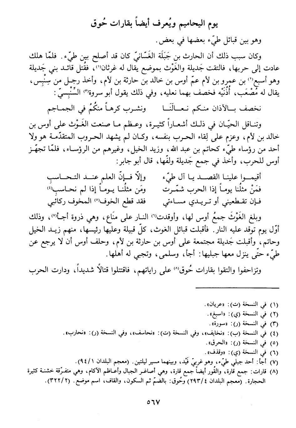 أَقِيمُوا عَلَيْنَا الْقَصْدَ يَا آلَ طَيْءٍ ... وَإِلَّا فَإِنَّ الْعِلْمَ عِنْدَ التَّحَاسُبِ