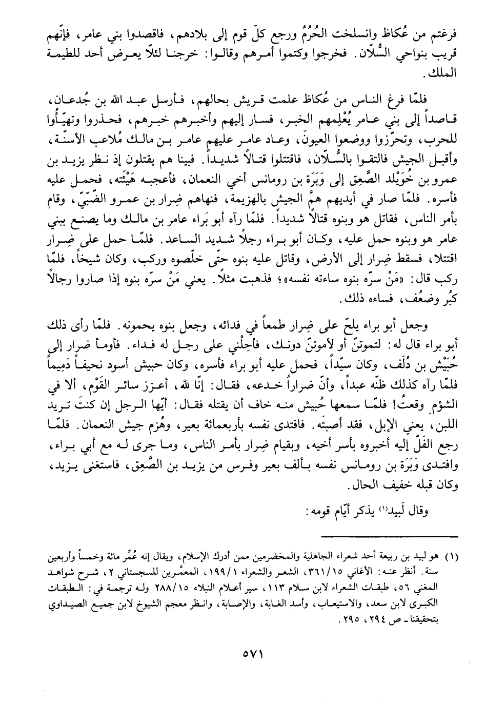 فَرَغْتُمْ مِنْ عُكَاظَ وَانْسَلَخَتِ الْحُرُمُ وَرَجَعَ كُلُّ قَوْمٍ إِلَى بِلَادِهِمْ، فَاقْصِدُوا بَنِي عَامِرٍ فَإِنَّهُمْ قَرِيبٌ بِنَوَاحِي السُّلَّانِ. فَخَرَجُوا وَكَتَمُوا أَمْرَهُمْ وَقَالُوا: خَرَجْنَا لِئَلَّا يَعْرِضَ أَحَدٌ لِلَطِيمَةِ الْمَلِكِ.