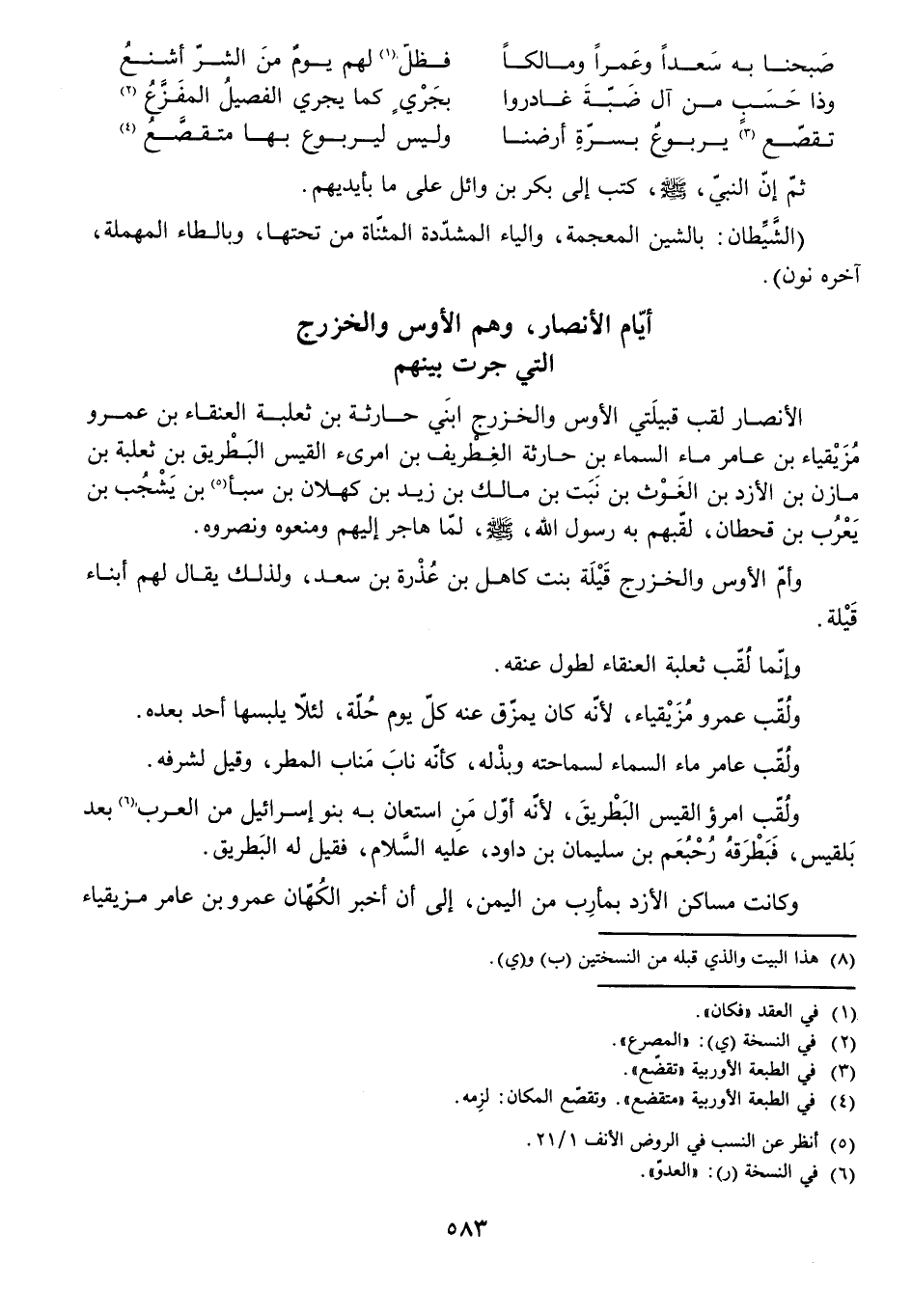 [أَيَّامُ الْأَنْصَارِ وَهُمُ الْأَوْسُ وَالْخَزْرَجُ الَّتِي جَرَتْ بَيْنَهُمْ]
