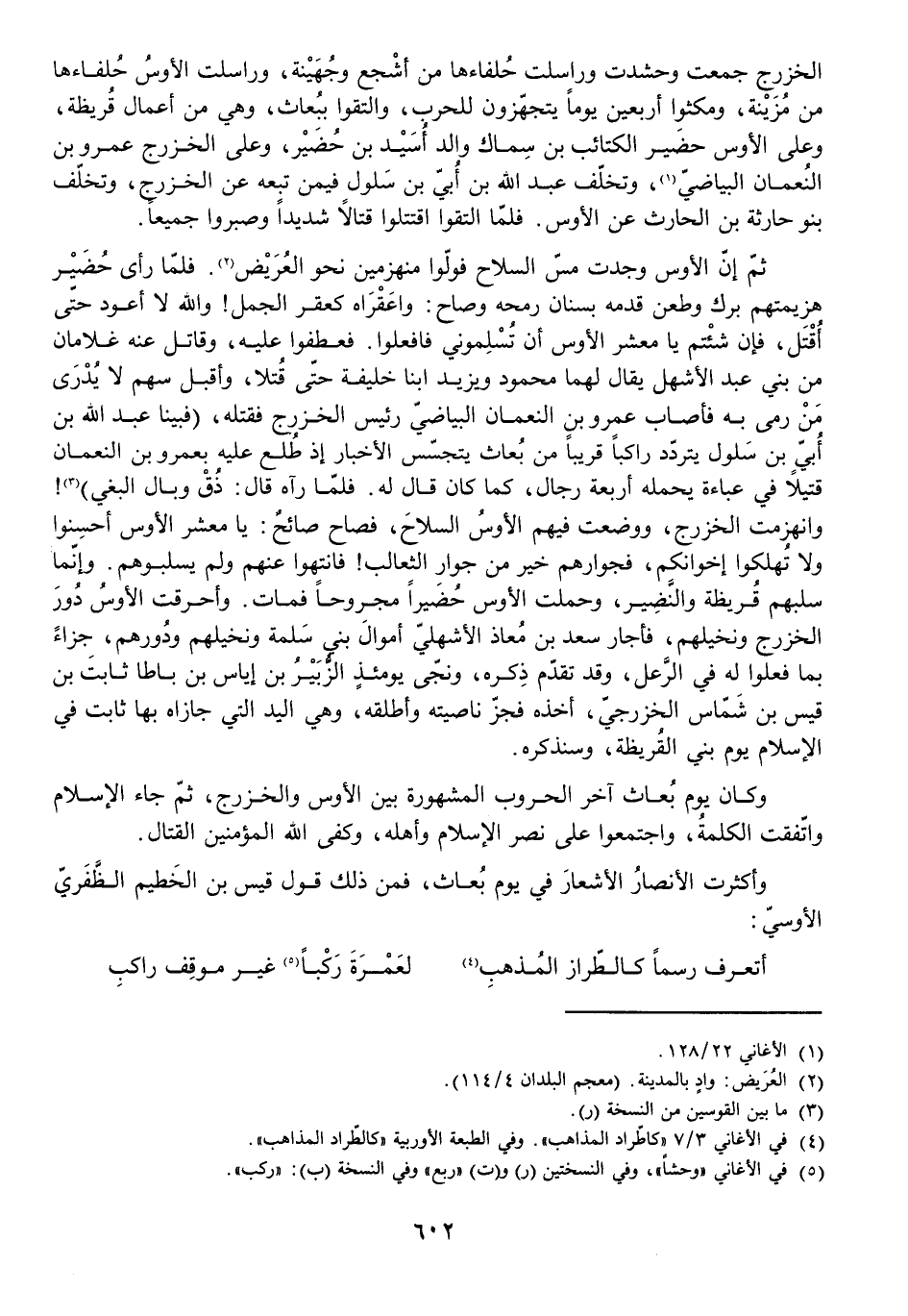 وَكَانَ يَوْمُ الْبُعَاثِ آخِرَ الْحُرُوبِ الْمَشْهُورَةِ بَيْنَ الْأَوْسِ وَالْخَزْرَجِ، ثُمَّ جَاءَ الْإِسْلَامُ وَاتَّفَقَتِ الْكَلِمَةُ، وَاجْتَمَعُوا عَلَى نَصْرِ الْإِسْلَامِ وَأَهْلِهِ، وَكَفَى اللَّهُ الْمُؤْمِنِينَ الْقِتَالَ.