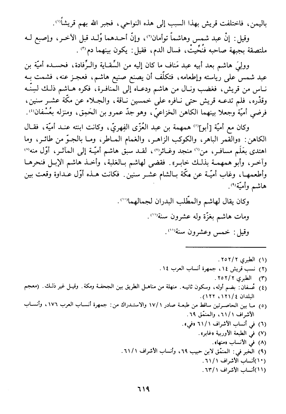 وَقِيلَ: إِنَّ عَبْدَ شَمْسٍ وَهَاشِمًا تَوْأَمَانِ، وَإِنَّ أَحَدَهُمَا وُلِدَ قَبْلَ الْآخَرِ وَإِصْبَعٌ لَهُ مُلْتَصِقَةٌ بِجَبْهَةِ صَاحِبِهِ فَنُحِّيَتْ، فَسَالَ الدَّمُ، فَقِيلَ يَكُونُ بَيْنَهُمَا دَمٌ.