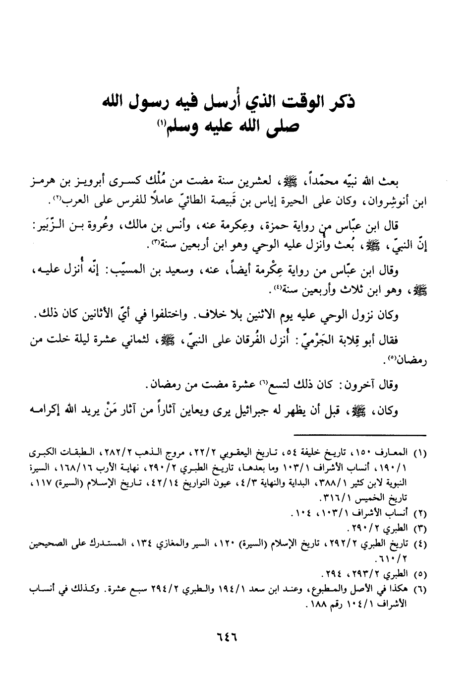 [ذِكْرُ الْوَقْتِ الَّذِي أُرْسِلَ فِيهِ رَسُولُ اللَّهِ صَلَّى اللَّهُ عَلَيْهِ وَسَلَّمَ]