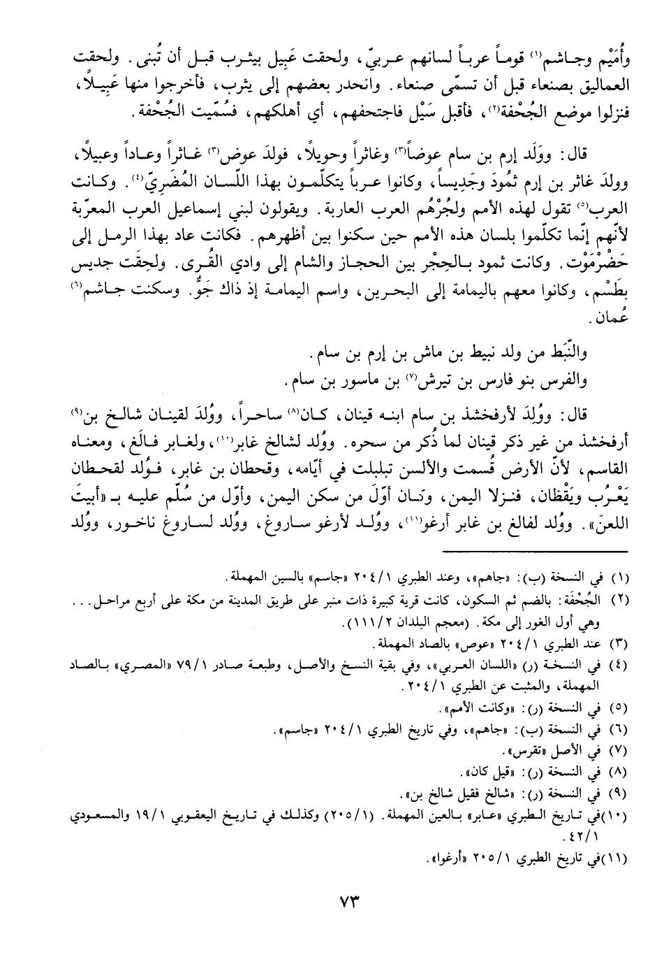 وَالنَّبَطُ مِنْ وَلَدِ نَبِيطِ بْنِ مَاشِ بْنِ إِرَمَ بْنِ سَامٍ. وَالْفُرْسُ بَنُو فَارِسَ بْنِ تِيرَشَ بْنِ مَاسُورَ بْنِ سَامٍ.