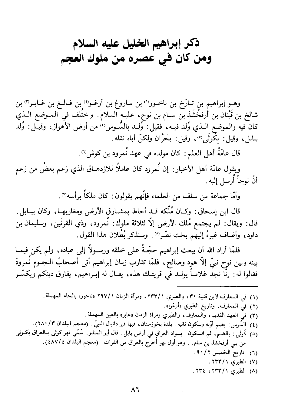 [ذِكْرُ إِبْرَاهِيمَ الْخَلِيلِ عَلَيْهِ السَّلَامُ وَمَنْ كَانَ فِي عَصْرِهِ مِنْ مُلُوكِ الْعَجَمِ]
