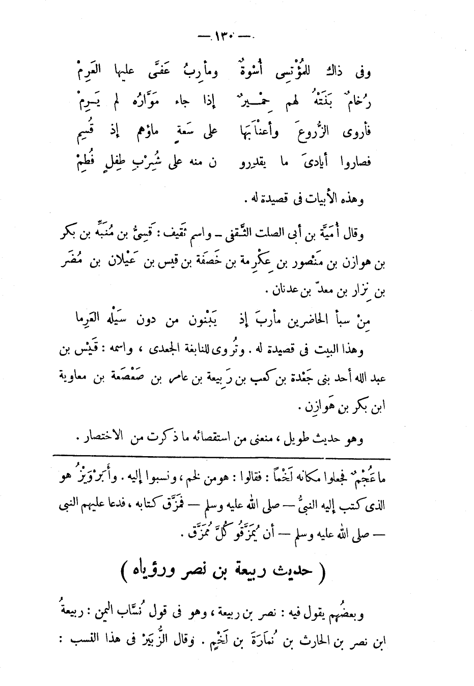 (حَدِيثُ رَبِيعَةَ بْنِ نَصْرٍ وَرُؤْيَاهُ) وَبَعْضُهُمْ يَقُولُ فِيهِ: نَصْرُ بْنُ رَبِيعَةَ، وَهُوَ فى قول نسّاب اليمن: ربيعة ابن نَصْرِ بْنِ الْحَارِثِ بْنِ نُمَارَةَ بْنِ لَخْمٍ. وَقَالَ الزّبَيْرُ فِي هَذَا النّسَبِ: