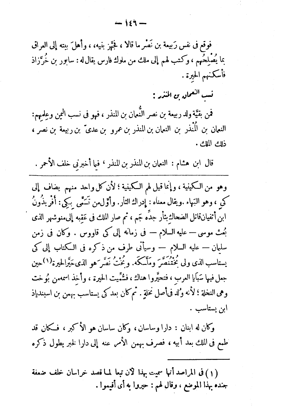 وَهُوَ مِنْ الْكِينِيّةِ، وَإِنّمَا قِيلَ لَهُمْ الْكِينِيّةُ؛ لِأَنّ كُلّ وَاحِدٍ مِنْهُمْ يُضَافُ إلَى كَيْ، وَهُوَ الْبَهَاءُ. وَيُقَالُ مَعْنَاهُ: إدْرَاكُ الثّأْرِ. وَأَوّلُ من تسمّى بكى: أفريذون ابن أَثَفَيَانِ قَاتِلُ الضّحّاكِ بِثَأْرِ جَدّهِ جَمّ، ثُمّ صَارَ الْمُلْكُ فِي عَقِبِهِ إلَى منوشهر الّذِي بُعِثَ مُوسَى- عَلَيْهِ السّلَامُ- فِي زَمَانِهِ إلَى كَيْ قاووس. وَكَانَ فِي زَمَنِ سُلَيْمَانَ- عَلَيْهِ السّلَامُ- وَسَيَأْتِي طَرَفٌ مِنْ ذِكْرِهِ فِي الْكِتَابِ إلَى كَيْ يستاسب الّذِي وَلِيَ بُخْتَنَصّرَ وَمَلّكَهُ. وبخت نصّر هُوَ الّذِي حَيّرَ الْحِيرَةَ «1» حِينَ جَعَلَ فِيهَا سَبَايَا الْعَرَبِ، فَتَحَيّرُوا هُنَاكَ، فَسُمّيَتْ الْحِيرَةُ، وَأَخَذَ اسْمَهُ مِنْ بوخت وَهِيَ النّخْلَةُ؛ لِأَنّهُ وُلِدَ فِي أَصْلِ نَخْلَةٍ. ثُمّ كَانَ بَعْدَ كَيْ يستاسب بهمن بن اسبندياذ ابن يستاسب.