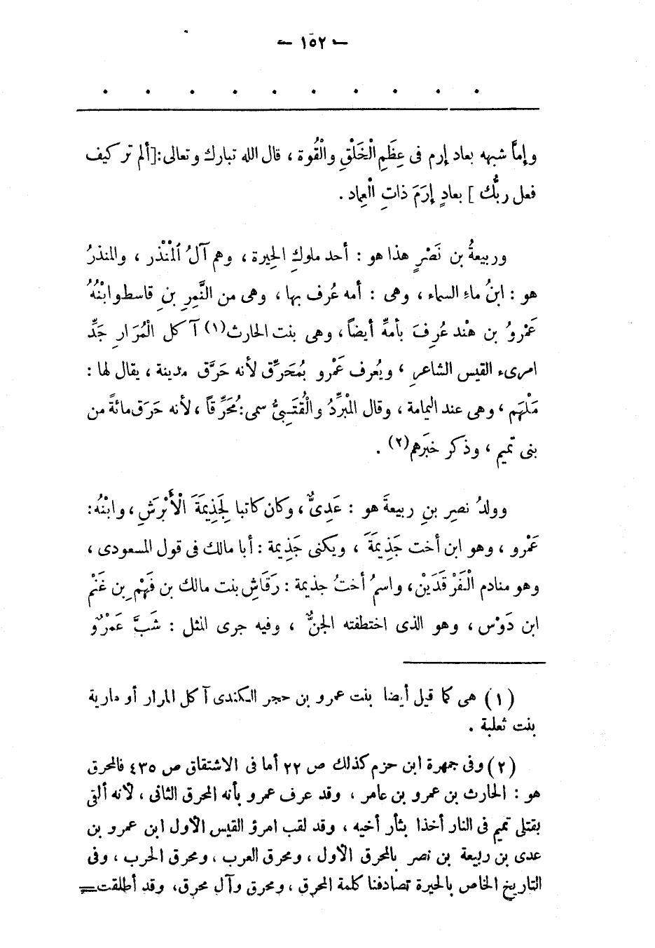 (2) وفى جمهرة ابن حزم كذلك ص 22 أما فى الاشتقاق ص 435 فالمحرق هو: الحارث بن عمرو بن عامر، وقد عرف عمرو بأنه المحرق الثانى، لأنه ألقى بقتلى تميم فى النار أخذا بثأر أخيه، وقد لقب امرؤ القيس الأول ابن عَمْرِو بْنِ عَدِيّ بْنِ رَبِيعَةَ بْنِ نَصْرٍ بالمحرق الأول، ومحرق العرب، ومحرق الحرب، وفى التاريخ الخاص بالحيرة تصادفنا كلمة المحرق، ومحرق وآل محرق، وقد أطلقت-